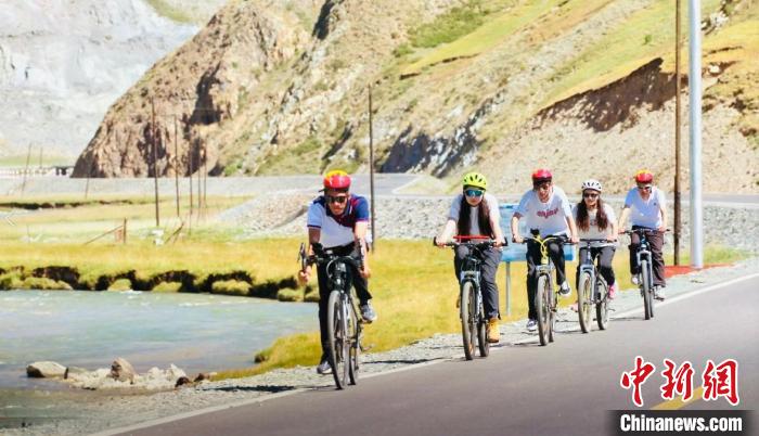 圖為民眾在公路上騎行。青海省交通運輸廳 供圖