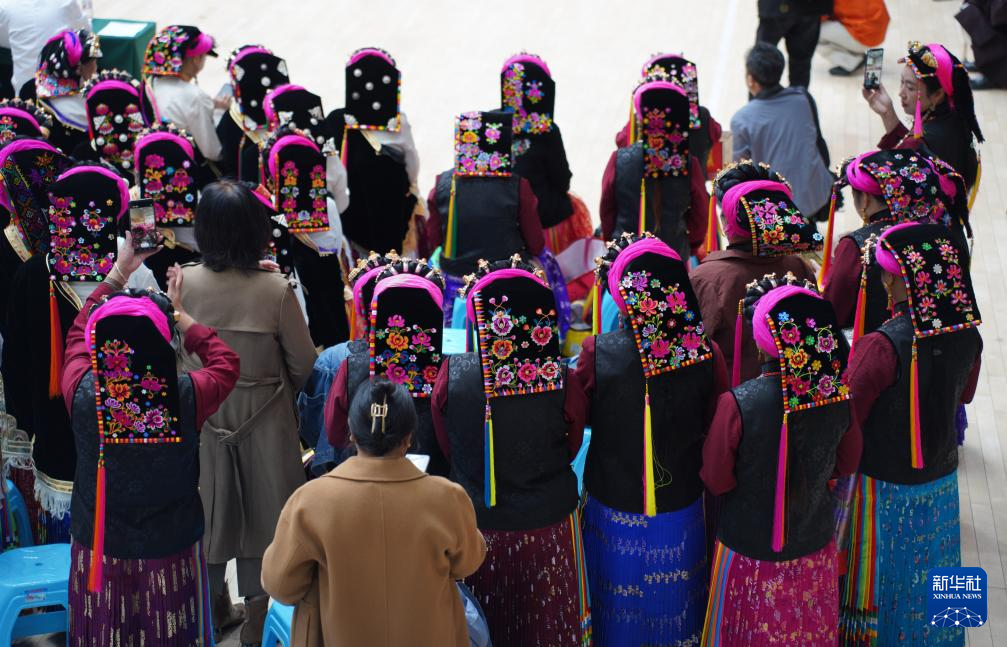 10月11日,佩戴藏族刺繡頭帕的婦女在四川省丹巴縣縣城參加活動。新華社 呂明響 攝