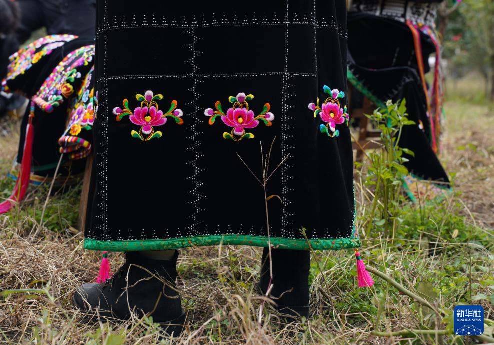 10月11日,在四川省丹巴縣縣城,一名身著藏族刺繡傳統(tǒng)服裝的婦女參加當(dāng)?shù)鼗顒?。新華社 呂明響 攝
