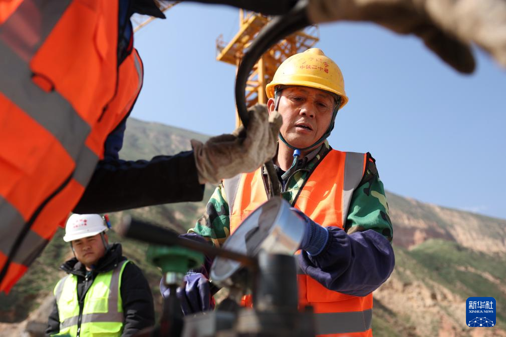 10月12日,中鐵二十局的建設(shè)者在蘭合鐵路本池溝大橋上施工作業(yè)。新華社記者 陳斌 攝