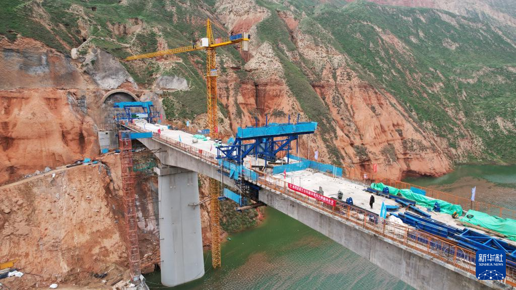 10月12日拍攝的建設(shè)中的蘭合鐵路本池溝大橋(無人機照片)。新華社記者 陳斌 攝
