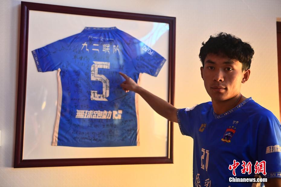 10月14日,在甘肅省甘南藏族自治州合作市甘南九二聯(lián)隊(duì)俱樂(lè)部榮譽(yù)展廳內(nèi),隊(duì)員更高才讓介紹該隊(duì)5號(hào)是中國(guó)足球協(xié)會(huì)杯第一個(gè)進(jìn)球的藏族球員。