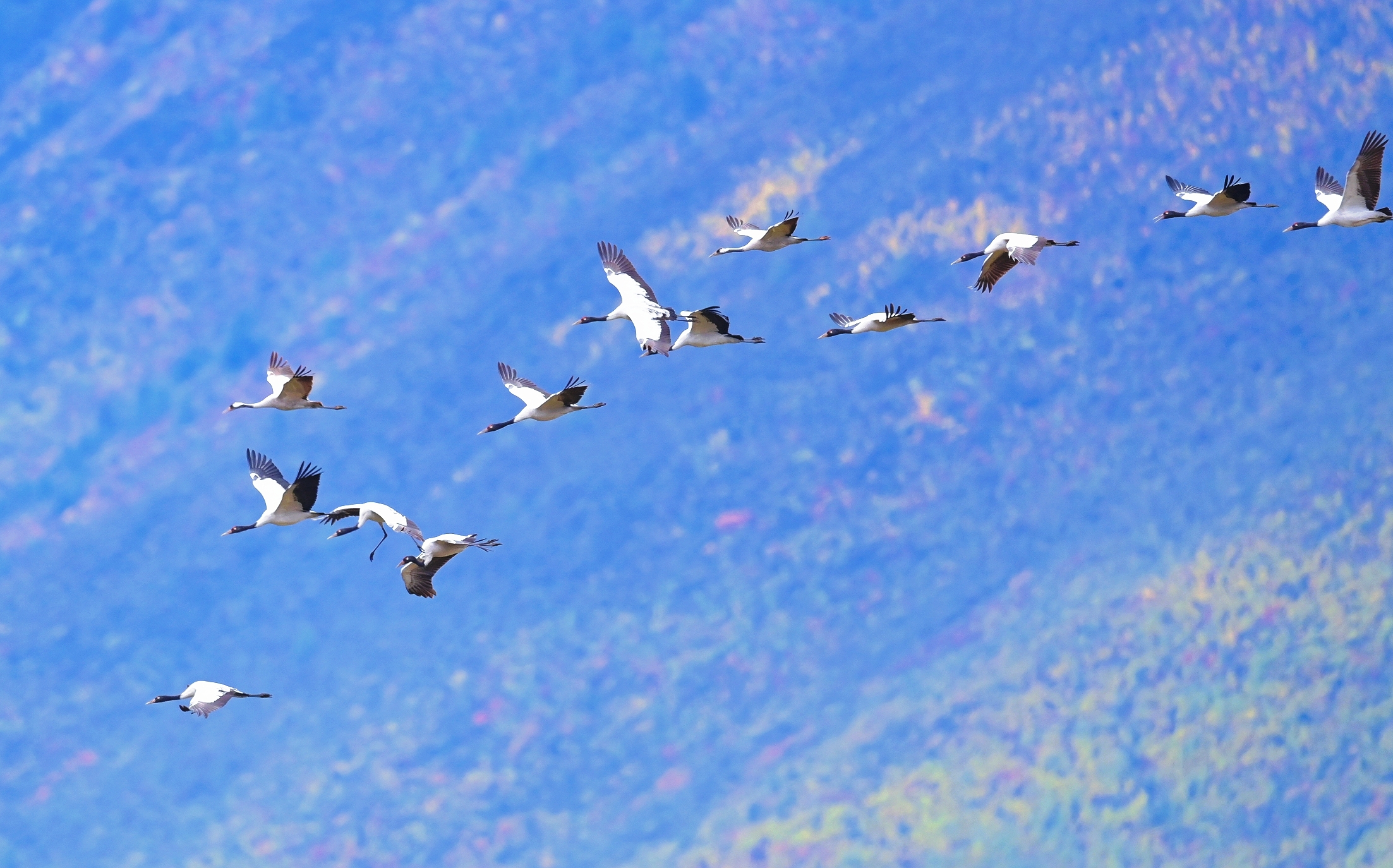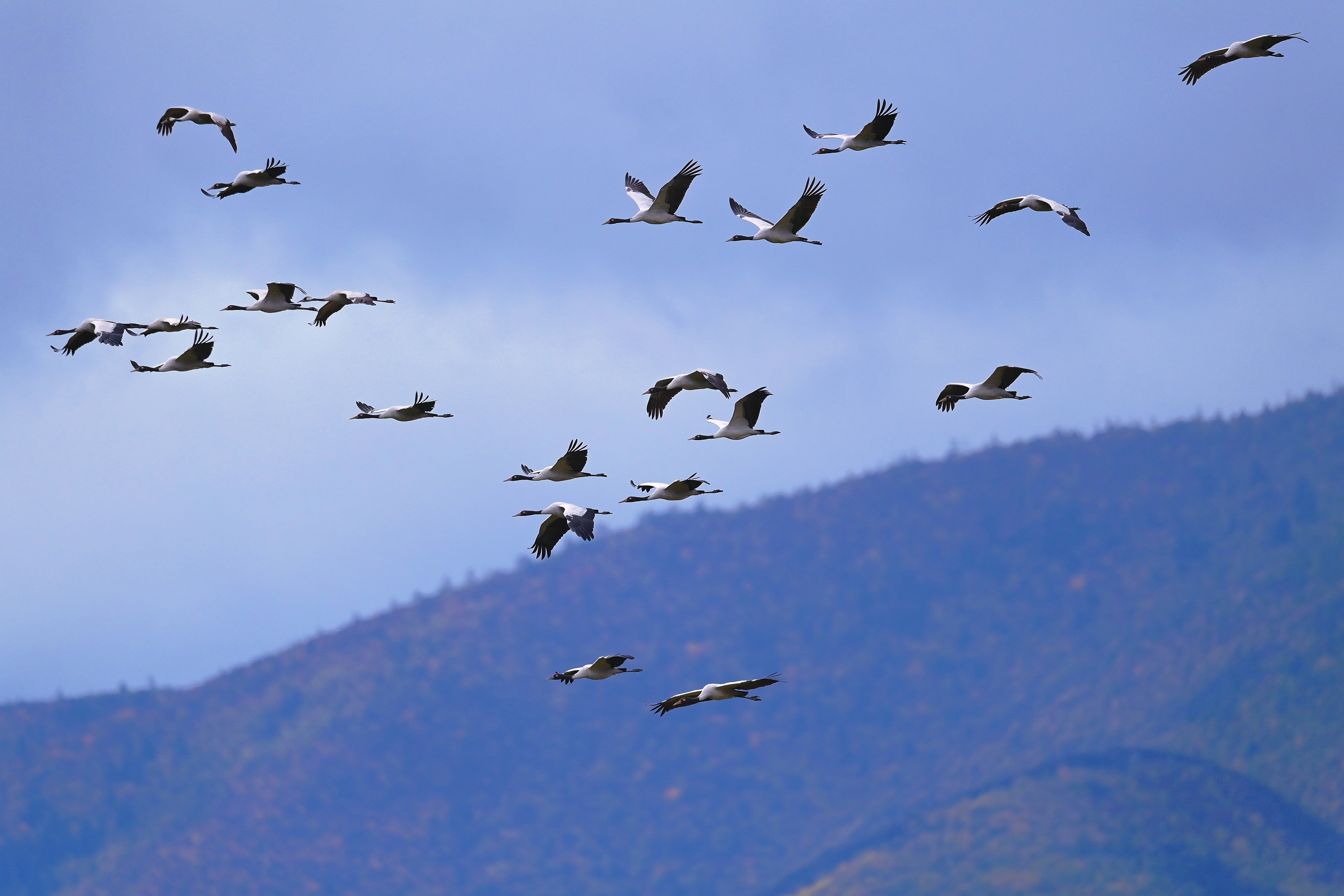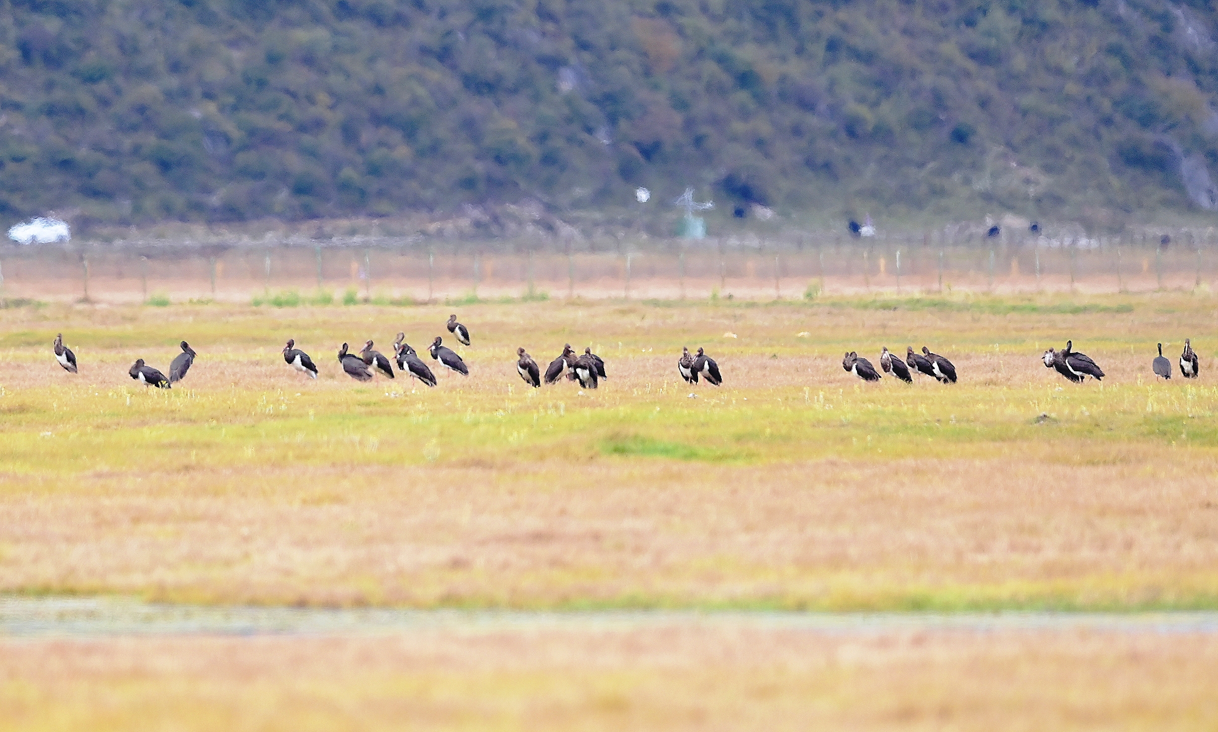 近日,香格里拉市納帕海省級自然保護區(qū)管護局工作人員監(jiān)測發(fā)現(xiàn),今年首批越冬黑頸鶴已飛抵納帕海。工作人員共監(jiān)測到黑頸鶴34只,其中幼鳥4只,與黑頸鶴同期飛抵的還有灰鶴2只,黑鸛61只。