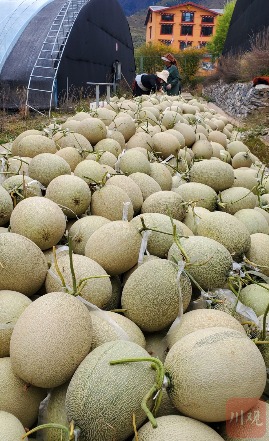 10月24日,松潘高原現(xiàn)代農(nóng)業(yè)產(chǎn)業(yè)園區(qū)內(nèi),高原哈密瓜迎來豐收采摘。