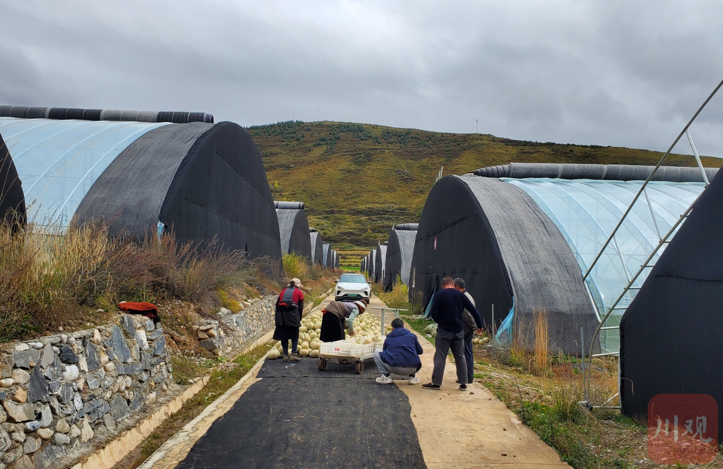 10月24日,位于阿壩州松潘縣川主寺鎮(zhèn)的松潘高原現(xiàn)代農(nóng)業(yè)產(chǎn)業(yè)園區(qū)內(nèi),豐收的高原網(wǎng)紋瓜進入采摘期。