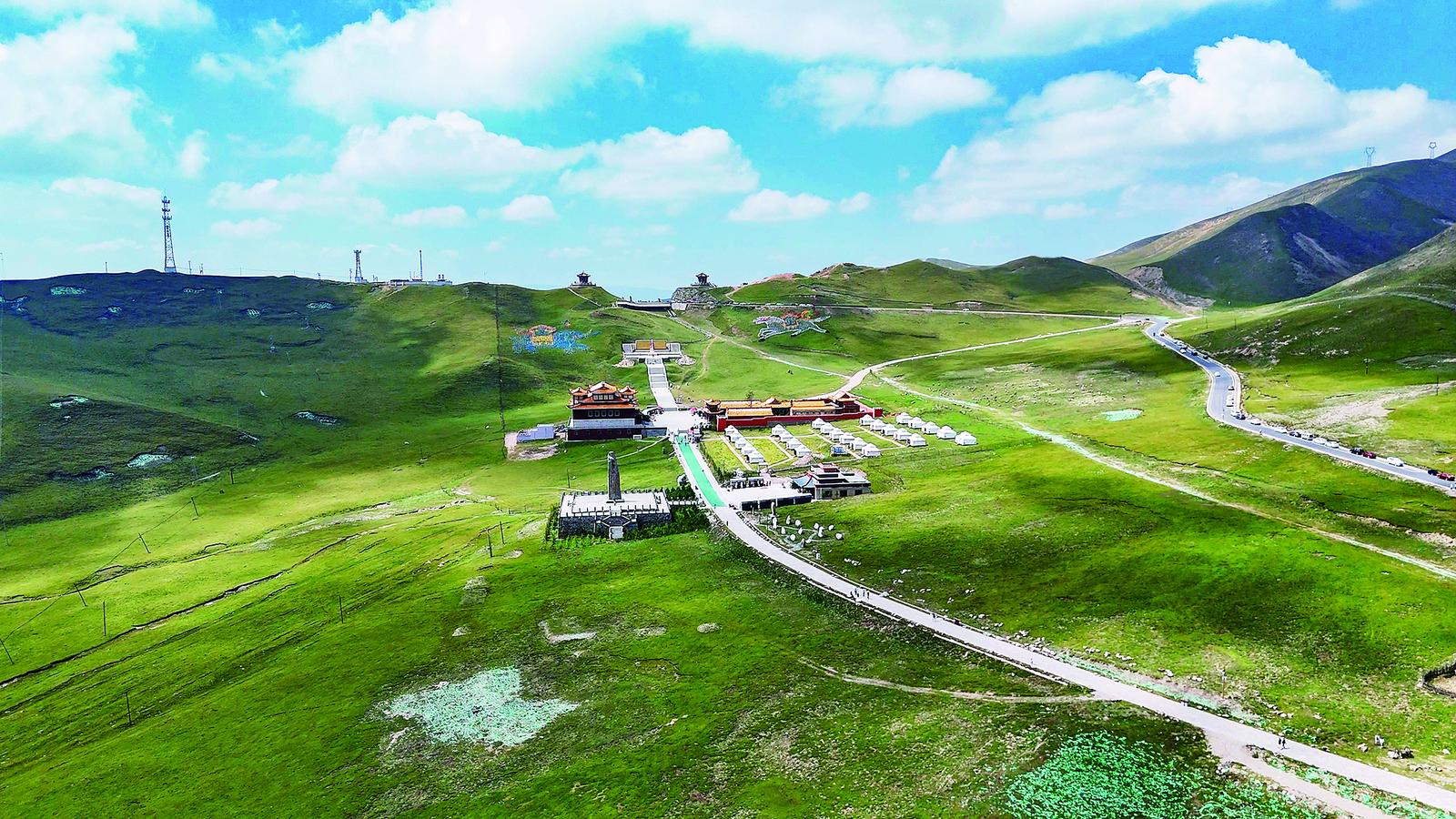 如今,唐蕃古道邊,文成公主雕塑靜靜矗立,端莊眺望遠(yuǎn)方,滿載思鄉(xiāng)之情。山麓文成公主廟,供奉松贊干布與公主塑像。日月山兩座山峰上的日亭、月亭,建筑精巧、金碧輝煌,充滿了特色。亭內(nèi)不僅有紀(jì)念文成公主進(jìn)藏的碑文和壁畫,還有珍貴的唐蕃赤嶺分界碑等歷史文物。
