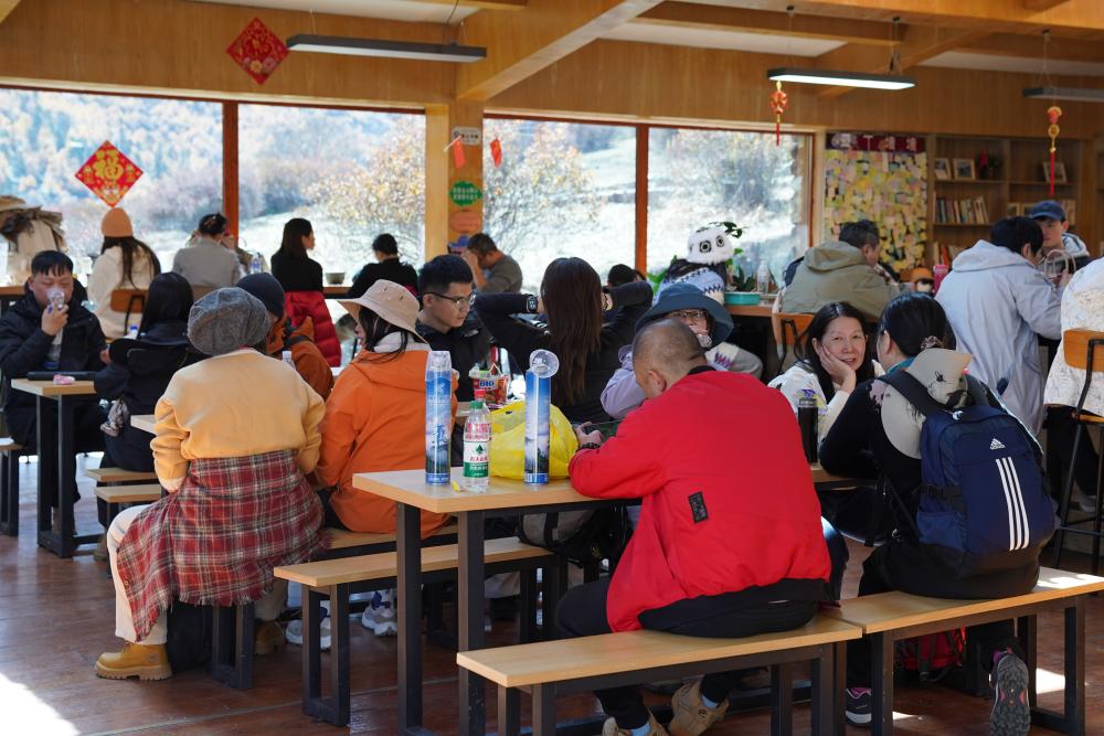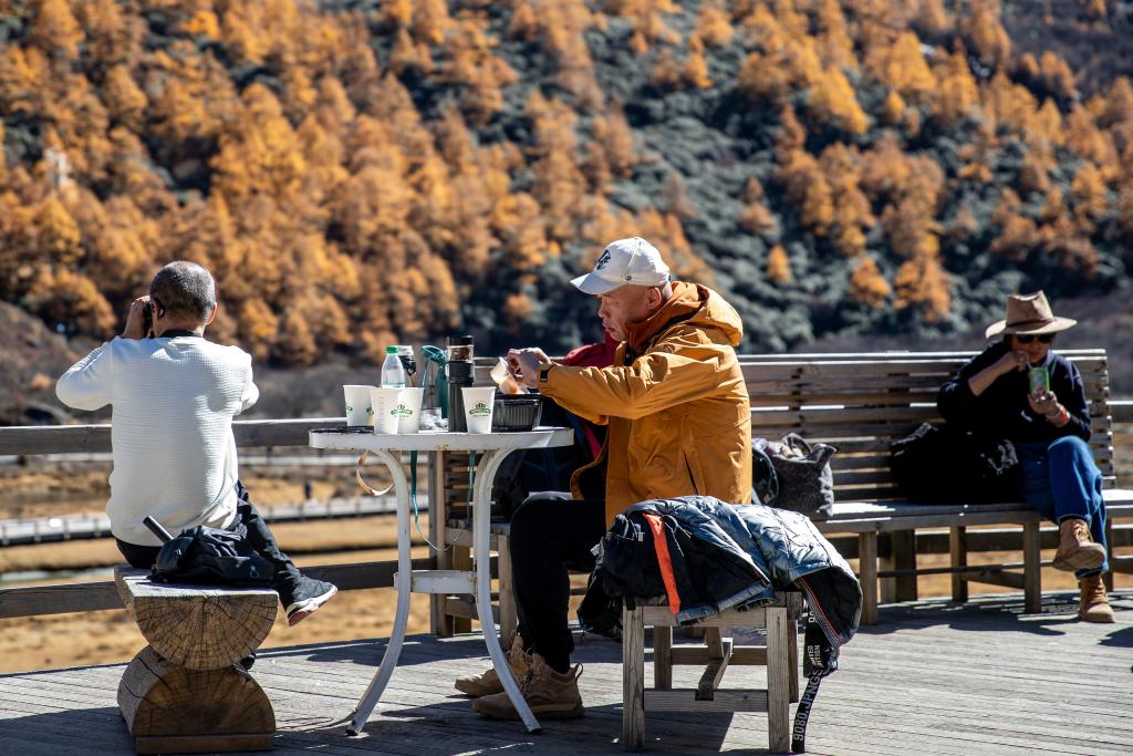10月31日,在四川省甘孜藏族自治州的稻城亞丁景區(qū),游客在“亞丁驛站”用餐、休息。新華社記者 儲(chǔ)加音 攝