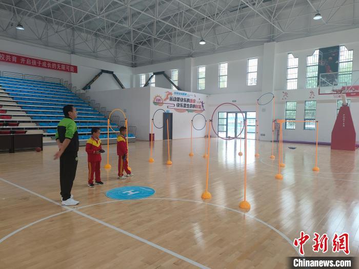 10月14日,德欽縣第二小學(xué)學(xué)生在室內(nèi)體育館內(nèi)參加無(wú)人機(jī)興趣班。 (德欽縣第二小學(xué)供圖)