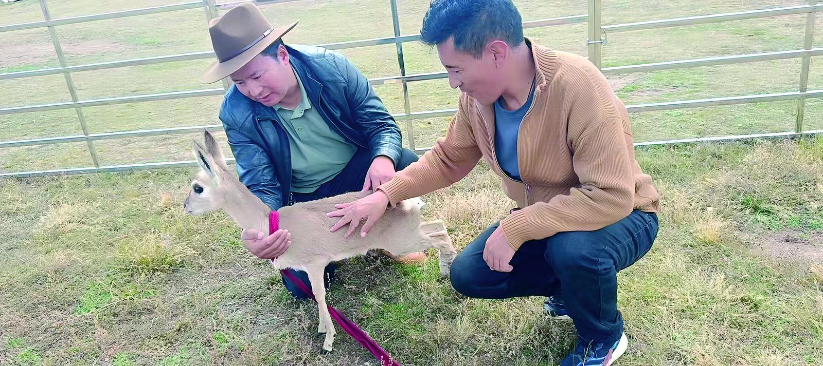 這是10月1日發(fā)生在三江源國(guó)家公園黃河源園區(qū)黃河鄉(xiāng)阿映村的一幕。當(dāng)時(shí),黃河鄉(xiāng)生態(tài)管護(hù)站負(fù)責(zé)人加羊多杰和管護(hù)員本強(qiáng)正在巡護(hù)過程中,發(fā)現(xiàn)了一只受傷的藏原羚。