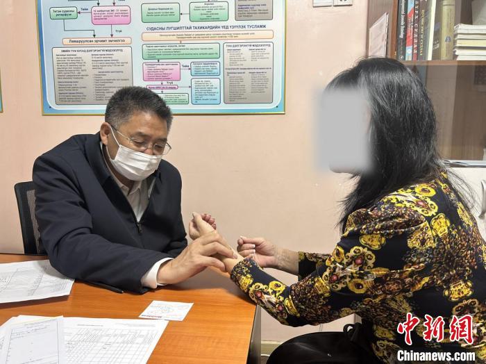 圖為青海省藏醫(yī)藥專家斗周才讓(左)在蒙古國(guó)問(wèn)診交流。受訪者 供圖