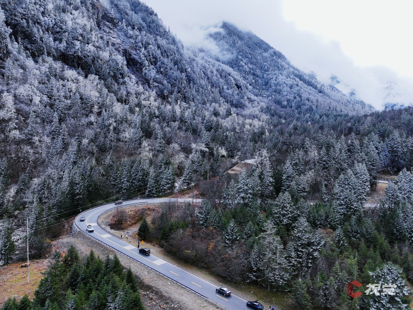 初冬時節(jié)的川西,有著堪比人間仙境的美,從阿壩網(wǎng)紅公路“理小路”一路馳行到達(dá)畢棚溝,路途中可見皚皚雪山、五彩斑斕的彩林、晶瑩剔透的霧凇、碧波澄澈的海子、絡(luò)繹不絕的車輛與游人……多重的美景,繪就出一個美輪美奐的“童話世界”。