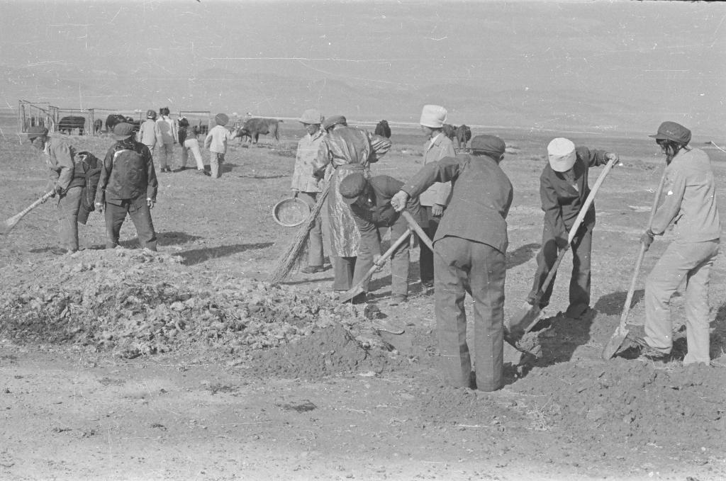 20世紀(jì)50年代,群眾在香日德開(kāi)墾農(nóng)田(資料照片)。新華社發(fā)