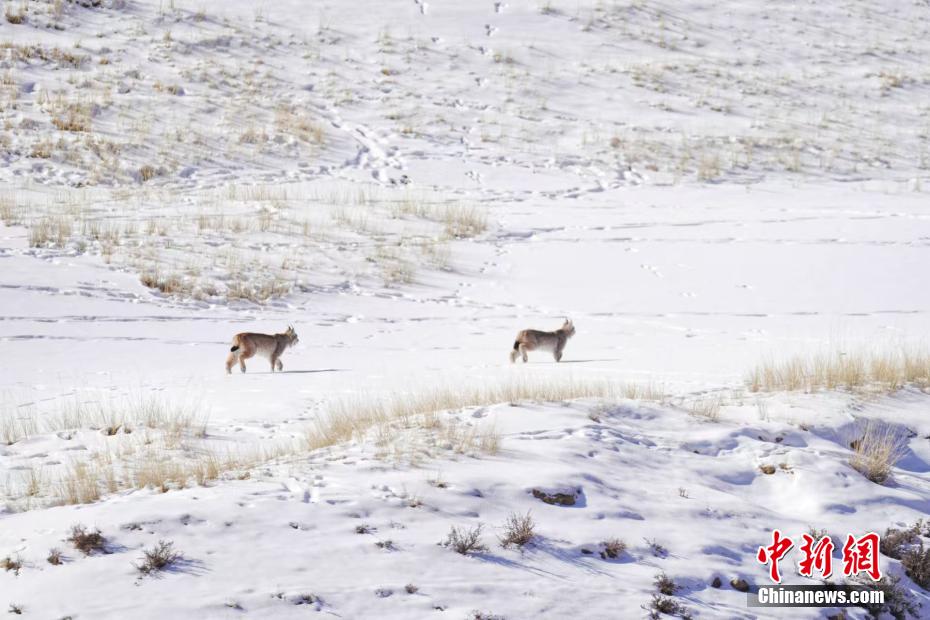 日前,在青海省海西州德令哈市尕海鎮(zhèn)陶哈村,攝影愛好者用鏡頭捕捉到兩只猞猁在雪山草地中悠然踱步的珍貴畫面。猞猁外形似貓,但比貓體形大,屬于中型猛獸,耳朵尖端長有黑色聳立的簇毛,是一種離群獨居的野生動物。近年來,隨著柴達木盆地生態(tài)保護力度加強,當?shù)財z影愛好者時常在溝里鄉(xiāng)地區(qū)拍攝到雪豹、猞猁、兔猻、狼、巖羊等多種高原野生動物。圖為兩只猞猁在雪地里漫步。