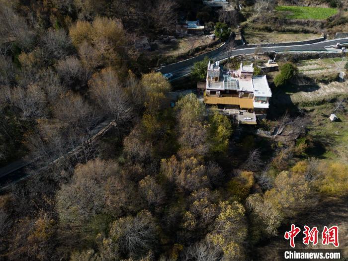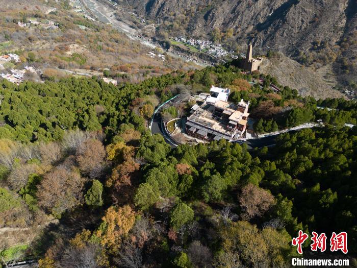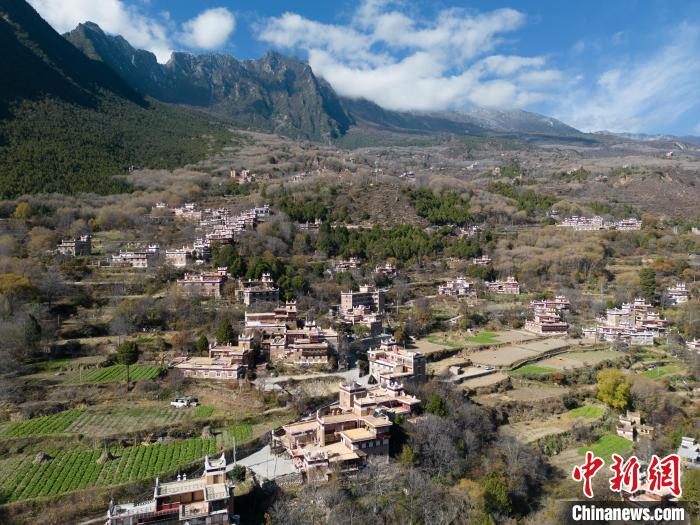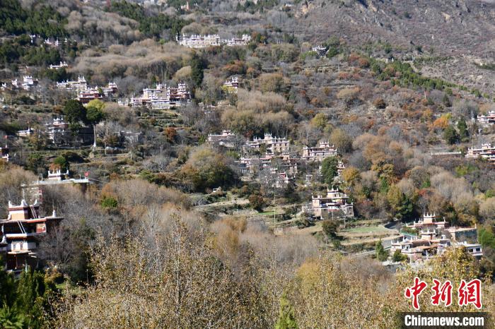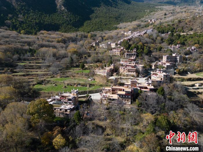 12月3日,四川省甘孜州丹巴縣甲居藏寨吸引游人。初冬時(shí)節(jié),甲居藏寨一幢幢藏式樓房在藍(lán)天白云映襯下,呈現(xiàn)出一幅色彩斑斕的景象。(無(wú)人機(jī)照片)中新社記者 張浪 攝