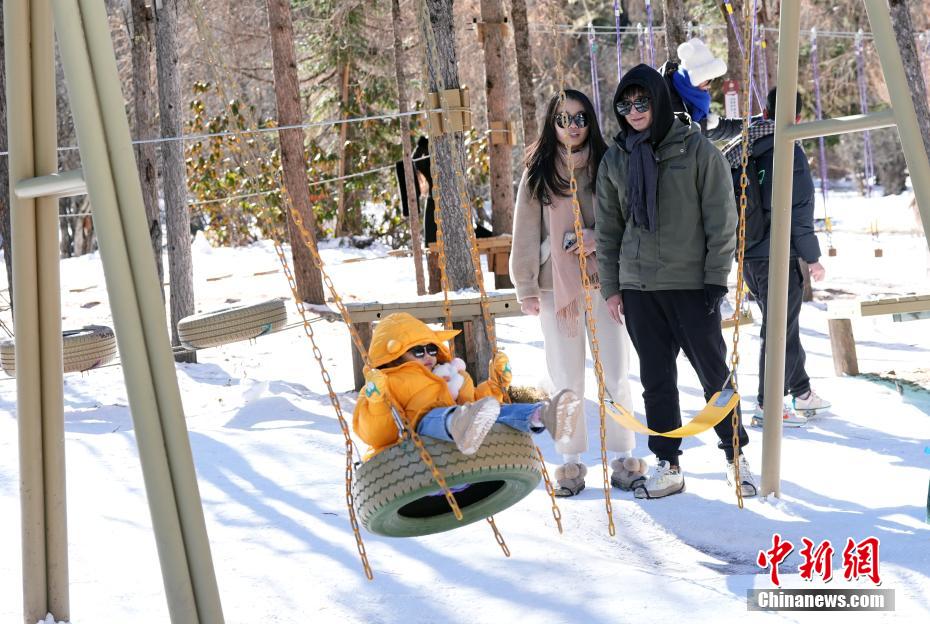 圖為小朋友在雪地里玩秋千。中新社記者 安源 攝