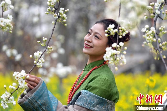 3月17日,四川省阿壩州金川縣梨花綻放,滿山遍野,雪白的梨花,隨風飄絮,令人陶醉,吸引眾多游客前來游覽、拍照?!?/p>