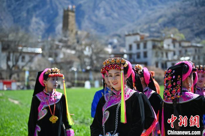 3月25日,四川丹巴,藏寨里一群即將登臺(tái)表演的丹巴女孩。中新社記者 劉忠俊 攝