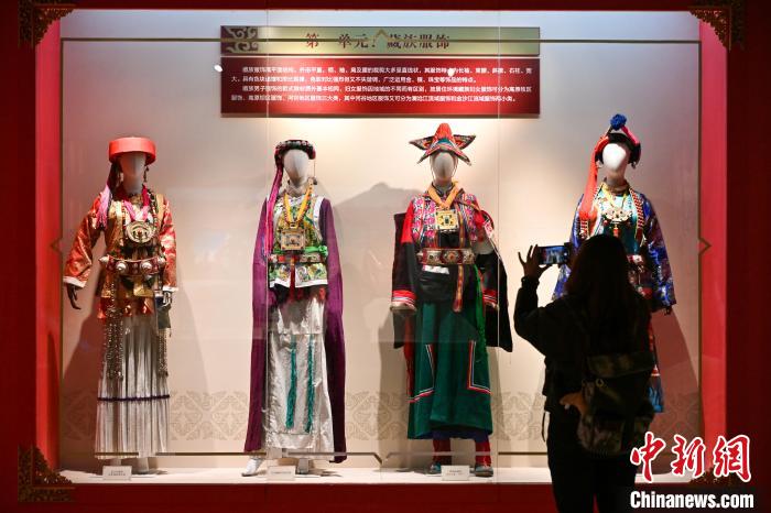 3月1日,迪慶藏族自治州博物館內(nèi)展出的藏族女性服飾吸引游客拍照。李嘉嫻 攝