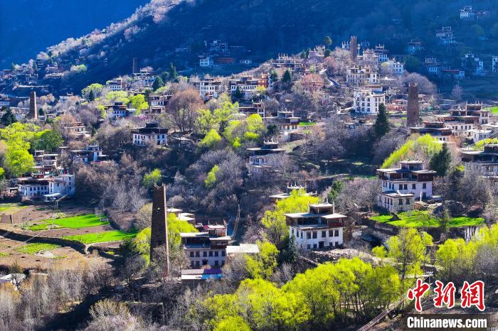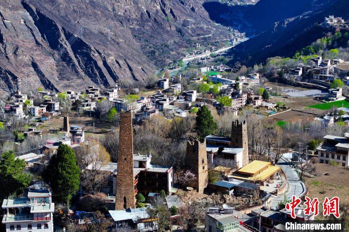 4月初,丹巴縣墨爾多山鎮(zhèn)的碉樓和藏寨。中新社記者 劉忠俊 攝
