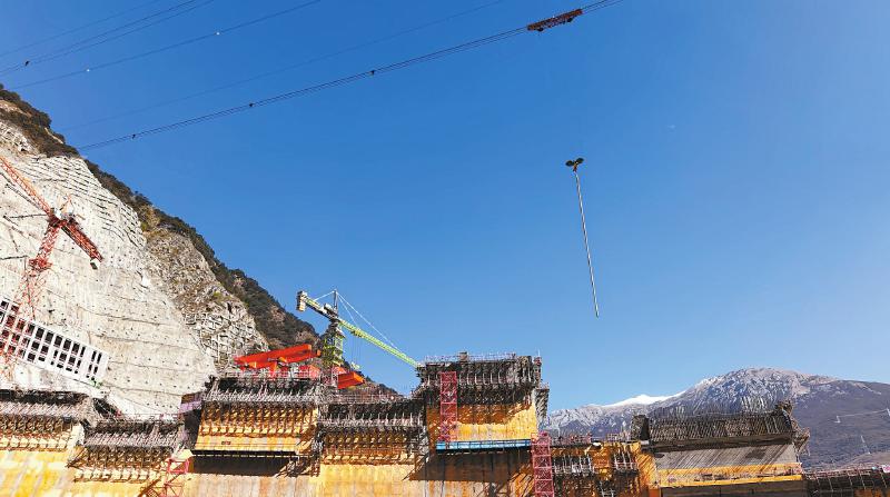 水電站最大壩高217米,混凝土澆筑總量達251萬立方米。葉巴灘水電站場址所在地晝夜溫差明顯,極端氣溫條件下,會出現(xiàn)最高溫度達37.1攝氏度,最低溫度達零下23.5攝氏度的氣溫狀況。這種氣候條件下,混凝土容易產生溫度裂縫。項目團隊通過優(yōu)化施工組織實現(xiàn)轉倉無縫銜接,在國內高海拔寒冷地區(qū)首次實現(xiàn)大壩混凝土全年連續(xù)澆筑。