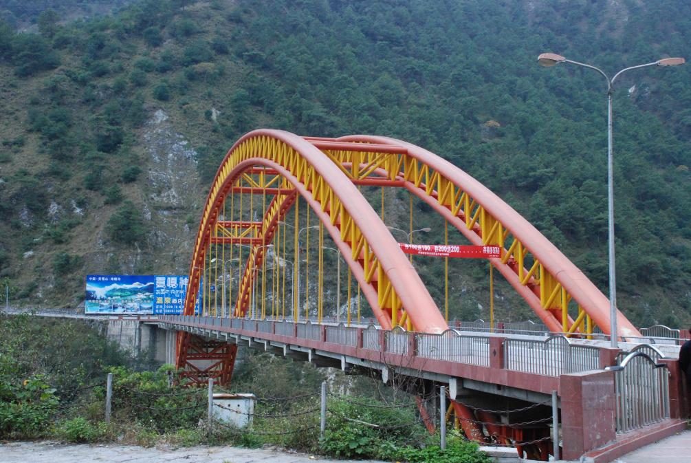 瀘定橋下游,2000年1月建成通車的大渡河大橋,是瀘定縣通往海螺溝景區(qū)的重要橋梁之一。該橋橫跨大渡河?xùn)|西兩岸,如今依然是瀘定縣南部對(duì)外交通的重要節(jié)點(diǎn),為促進(jìn)民族地區(qū)經(jīng)濟(jì)社會(huì)發(fā)展發(fā)揮了重要作用。