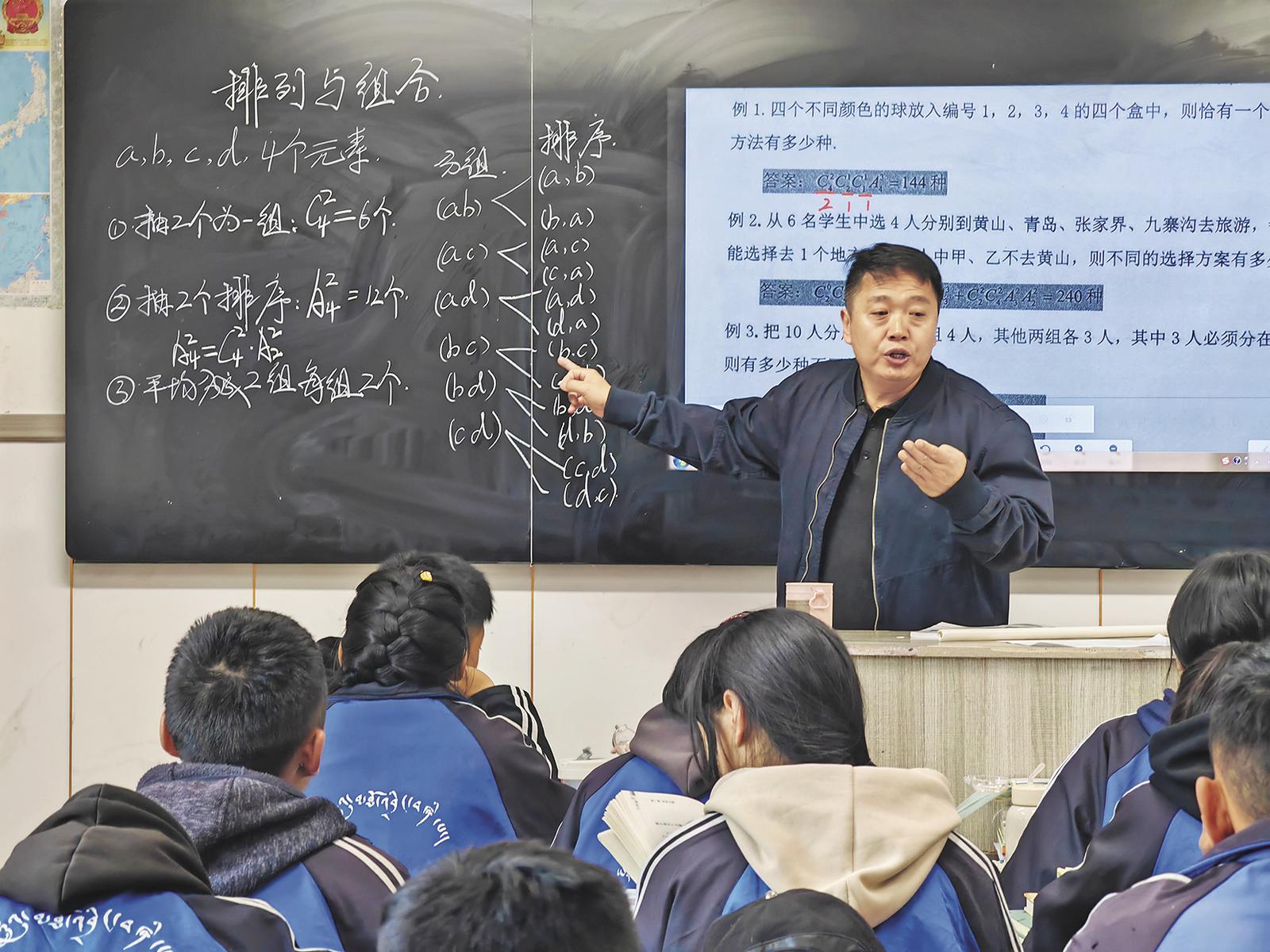 2023年5月,孫鳳軍主動請纓踏上海拔4000米的玉樹高原,展開自己的援青支教生涯。初到玉樹州第四民族高級中學(xué),孫鳳軍直觀感受到,北京援建的校舍靜美安然、教育硬件資源與其他省市差距不大,但軟件資源相對薄弱單一,學(xué)生手中只有“人教版”的數(shù)學(xué)課本,對高中數(shù)學(xué)知識的掌握程度停留在基礎(chǔ)層面,題型見得少、解題思維僵化,高考平均數(shù)學(xué)成績長年徘徊在及格線以下。