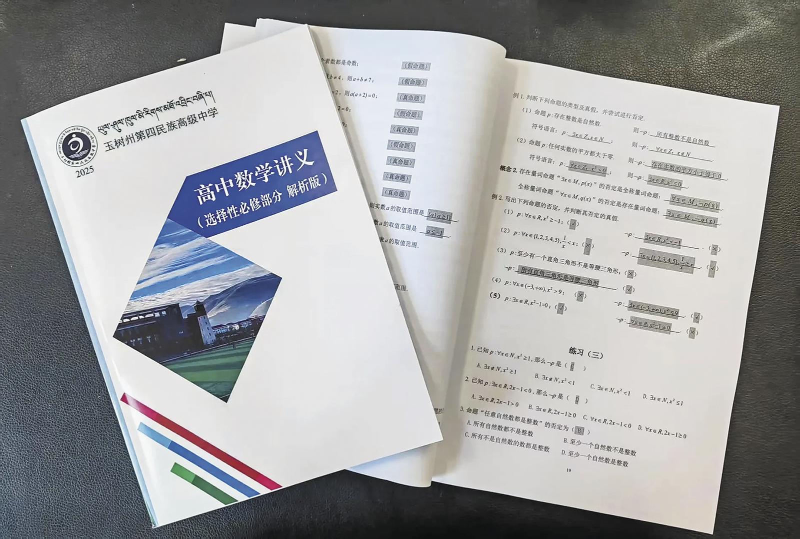 6月16日,在青海省玉樹藏族自治州第四民族高級中學(xué)高二7班的教室內(nèi),孩子們每個人手里拿著一本《高中數(shù)學(xué)講義(必修部分)解析版》認(rèn)真翻看。
