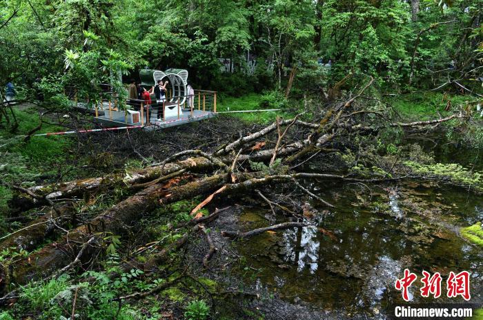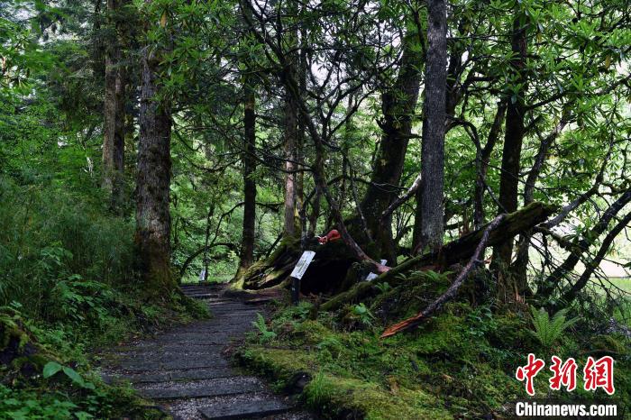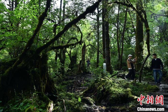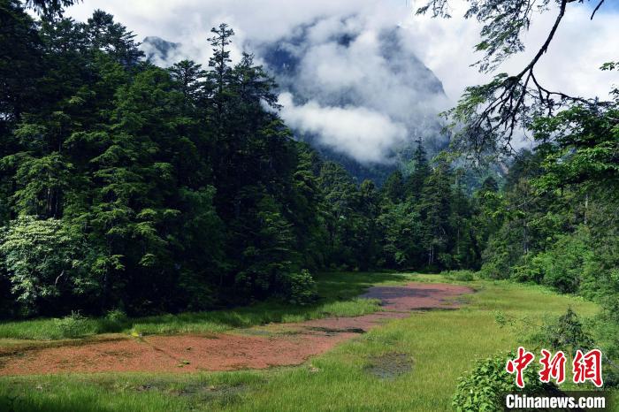 6月18日,記者走進(jìn)位于四川省甘孜藏族自治州的海螺溝景區(qū)草海子探訪。草海子是冰川雨林步游長(zhǎng)廊的入口,處于山地暖溫帶針闊葉混交林帶,是一處末次冰期古冰磧湖,湖岸是一片很大的原始森林,生長(zhǎng)著各種珍稀植物,幽靜神秘。叢林因季相變化而五彩繽紛,又被稱為“五花林”。
