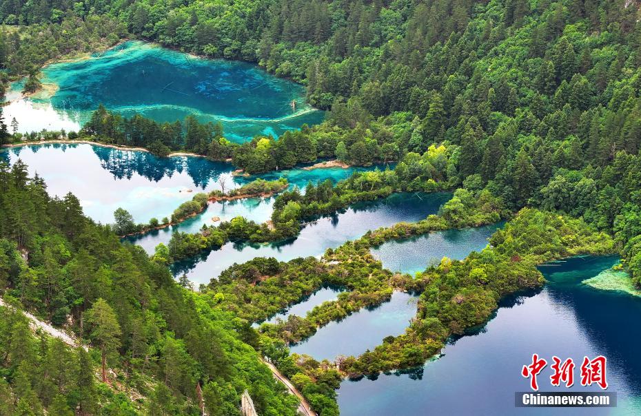 圖為五花海一角。(無(wú)人機(jī)照片)中新社記者 安源 攝