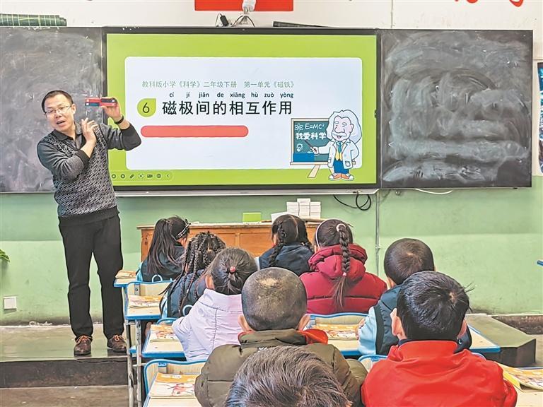 課堂上,陳磊帶領(lǐng)孩子探索科學(xué)奧秘,讓抽象的科學(xué)原理變得生動可感,更在幼小心靈中播下“實踐出真知”的科學(xué)火種;課堂下,他主動組織科學(xué)組教研活動,通過集體備課、示范課等提升當(dāng)?shù)亟處熕?。針對實驗室短板,他帶領(lǐng)團隊完成器材清點編碼、制定實驗?zāi)夸?、打造“科學(xué)長廊”等任務(wù)。
