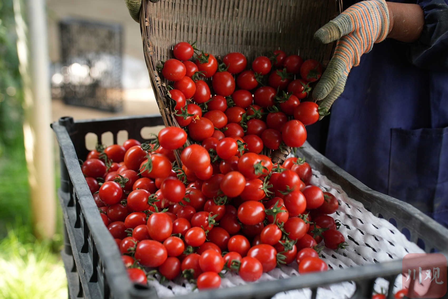 8月4日,松潘高原現(xiàn)代農業(yè)產業(yè)園區(qū)內,工人將新采摘的小番茄裝箱。