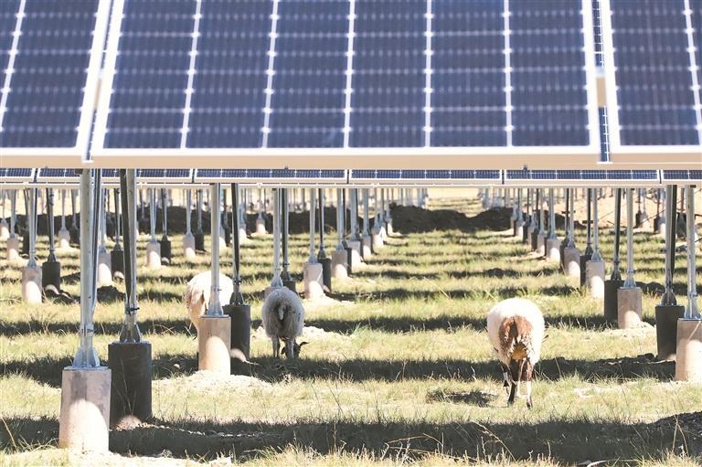 國家能源集團(tuán)青海公司啟暉光伏電站,板上發(fā)電、板下牧羊。國家能源集團(tuán)青海公司供圖