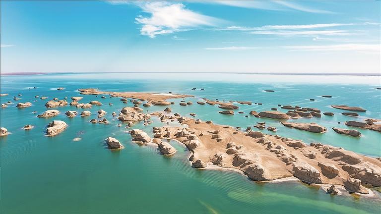 水上雅丹,戈壁與碧波交織的夢幻奇境。張地委 攝