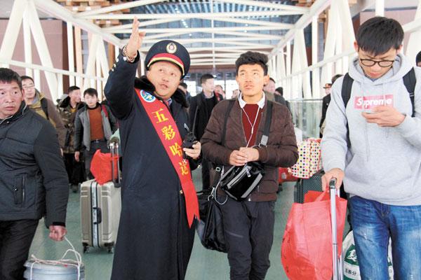 隨著春節(jié)、藏歷新年的臨近,一年一度的春運(yùn)即將拉開帷幕,為此,拉薩火車站做到節(jié)日安排早部署、早計(jì)劃、早落實(shí),用優(yōu)質(zhì)、便利、親情化的服務(wù)滿足廣大旅客的購(gòu)票需求。圖為拉薩火車站工作人員為旅客服務(wù)。記者 丹增群培 攝