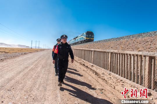 圖為拉薩鐵路公安處那曲車站派出所安多警務(wù)區(qū)民警開(kāi)展線路治安巡查工作。 胡安鵬 攝
