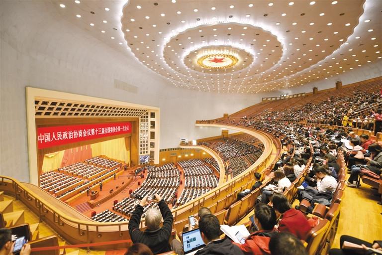 3月3日,全國(guó)政協(xié)十三屆一次會(huì)議在北京人民大會(huì)堂開(kāi)幕。圖為大會(huì)現(xiàn)場(chǎng)。記者 旦增西旦 攝