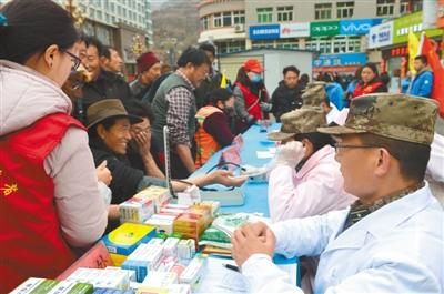 4月初,解放軍第75醫(yī)院官兵組織醫(yī)療隊進行愛民服務活動,為駐地群眾提供醫(yī)療咨詢服務、免費檢查身體、贈送藥品。 圖為愛民服務活動現(xiàn)場。 陳志強 攝