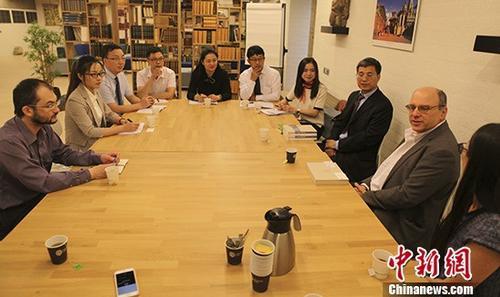 圖為交流團(tuán)與荷蘭萊頓大學(xué)地區(qū)研究院從事藏學(xué)研究的師生座談。 中新社 德永健 攝