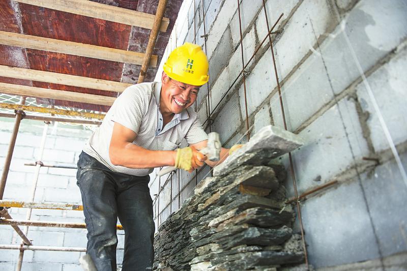 九寨溝縣漳扎鎮(zhèn),工程人員正在重建漳扎鎮(zhèn)小學(xué)。視覺四川 楊樹 攝