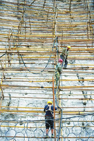 工程人員正在九寨溝縣開展地質(zhì)災(zāi)害隱患整治工作,對(duì)山坡進(jìn)行加固。視覺四川 楊樹 攝