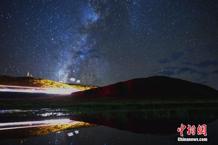 近日,從拉薩到阿里的國道318線、國道219,單程約1500公里的道路沿線上高原秋色如畫。圖為拉薩至阿里途中拍攝的星空倒影。江飛波 攝