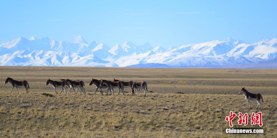 在阿里偶遇藏野驢的概率極高,草原上、小溪旁、濕地里、雪山下……幾乎無處不在。藏野驢不懼過往的車輛和行人,不時還凝視、打探端著相機(jī)的人類,仿佛在思考“驢生”。圖為雪山下的藏野驢。江飛波 攝