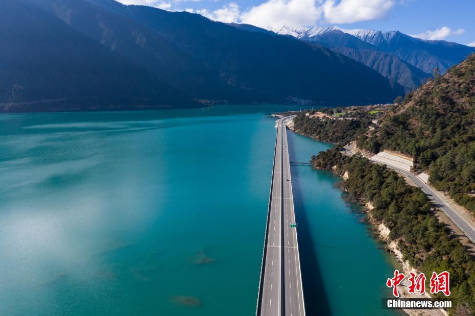 作為西藏目前“顏值最高”的高等級公路,拉林高等級公路在林芝市境內(nèi)的多布特大橋路段又被譽為西藏“最美水上公路”,公路橫跨湛藍的水面,顏值爆表。 何蓬磊 攝