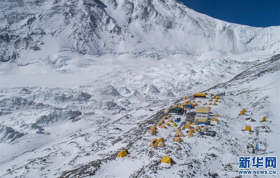 這是海拔6500米的珠峰前進(jìn)營(yíng)地(5月10日無(wú)人機(jī)照片)。新華社記者 孫非 攝