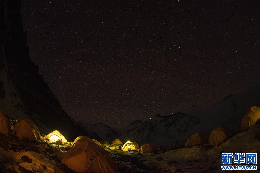 這是海拔6500米的珠峰前進(jìn)營(yíng)地夜景(5月10日攝)。新華社記者 孫非 攝