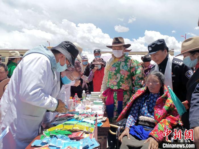 圖為活動(dòng)現(xiàn)場發(fā)放各類藥品。安多縣委宣傳部 供圖