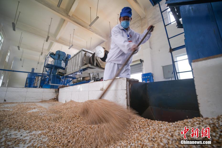 圖為7月28日,洛隆洛宗特色產(chǎn)品開(kāi)發(fā)公司工人炒青稞。中新社記者 何蓬磊 攝