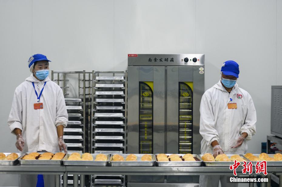 圖為7月28日,洛隆洛宗特色產(chǎn)品開(kāi)發(fā)公司工人制作青稞面包。中新社記者 何蓬磊 攝