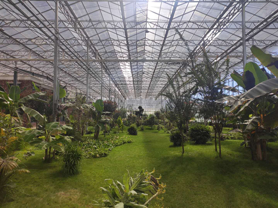 這生機(jī)勃勃的一幕,出現(xiàn)在山南市扎囊縣阿扎鄉(xiāng)藏草萬畝植物種苗繁育基地的熱帶植物館??傉嫉丶s1萬畝的基地,共栽植有常綠喬木、落葉喬木、果樹、花灌木及熱帶苗木共278.57萬株。