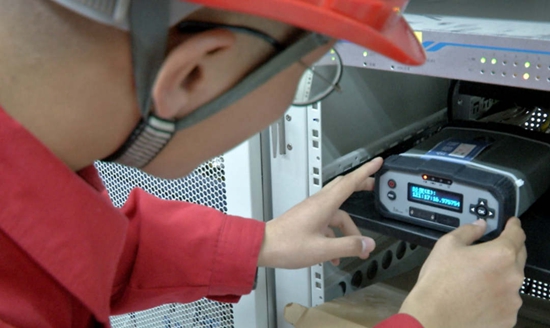 現(xiàn)場工作人員正在進行北斗數(shù)據(jù)調(diào)試工作